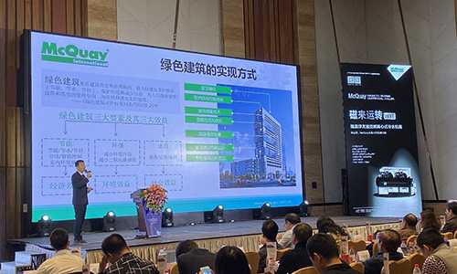 大會開幕式上,暖通行業(yè)專家依次發(fā)表重要講話,為參會人員帶來了新技術(shù)和新觀點(diǎn)。麥克維爾專業(yè)工程師在大會上發(fā)表了《麥克維爾與綠色建筑》精彩專題報(bào)告,重點(diǎn)介紹了麥克維爾節(jié)能產(chǎn)品在各類綠色建筑上的應(yīng)用,并通過案例詳盡介紹麥克維爾的節(jié)能方案應(yīng)用,旨在為各界客戶提供有競爭力的空氣及溫度解決方案、產(chǎn)品和服務(wù),共建綠色節(jié)能建筑。麥克維爾磁懸浮空調(diào)技術(shù)、變頻風(fēng)冷螺桿、兩級壓縮離心機(jī)技術(shù)、四管制一體機(jī)、模塊化技術(shù)、凈化技術(shù)等給行業(yè)留下深刻的印象。