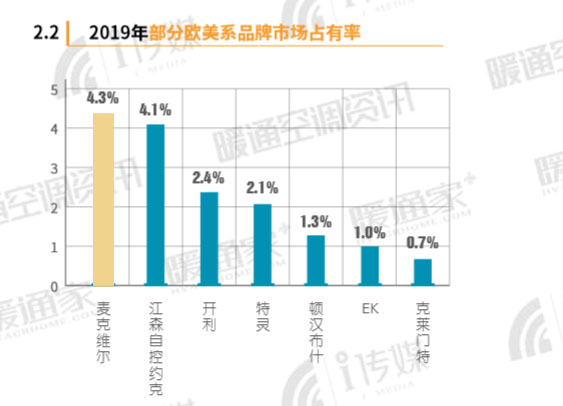 《暖通空調(diào)資訊》最新出爐的《2019年中國中央空調(diào)行業(yè)草根調(diào)研報告》顯示:2019年中國中央空調(diào)市場整體下滑了4%,在這一波劇烈震蕩的市場中,麥克維爾秉承可持續(xù)發(fā)展的策略,連續(xù)兩年穩(wěn)居歐美品牌市場第一名,且多個產(chǎn)品穩(wěn)居市場前列。