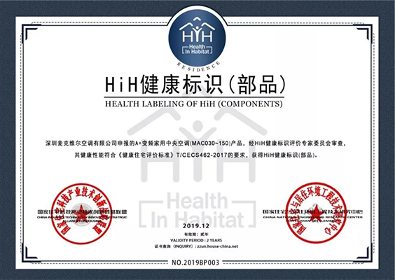 經(jīng)過國家住宅與居住環(huán)境工程技術(shù)研究中心HiH健康標(biāo)識評價專家委員會評審,A+產(chǎn)品的健康性能符合《健康住宅評價標(biāo)準(zhǔn)》T/CECS462-2017的要求,獲得HiH健康標(biāo)識。