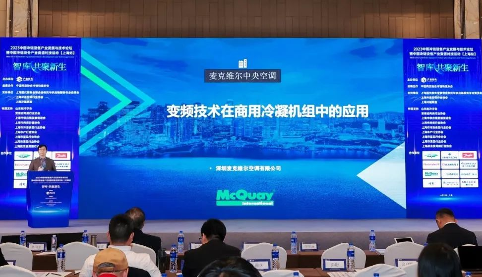 本屆論壇以“智庫·共聚新生”為主題,聚焦上海輻射長三角地區(qū)冷鏈設(shè)備后市場企業(yè),形成產(chǎn)業(yè)鏈共聚互生的新格局。來自政府、行業(yè)協(xié)會、科研院所的領(lǐng)導(dǎo)和專家以及產(chǎn)業(yè)鏈上下游企業(yè)、經(jīng)銷商代表等300余人出席了會議。麥克維爾受邀出席,并作“變頻技術(shù)在商用冷凝機組中的應(yīng)用”主題分享。