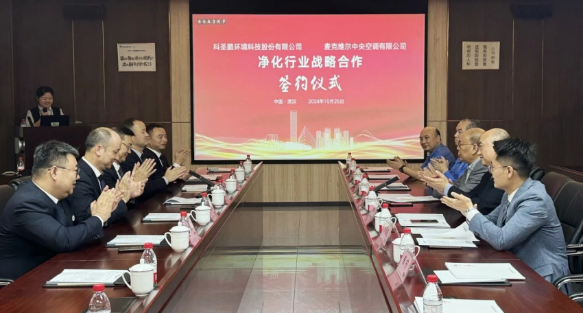 10月25日,一場(chǎng)意義非凡的戰(zhàn)略合作簽約儀式在麥克維爾武漢工廠隆重舉行,麥克維爾中央空調(diào)有限公司(以下簡(jiǎn)稱“麥克維爾”)總經(jīng)理周東化、科圣鵬環(huán)境科技股份有限公司(以下簡(jiǎn)稱“科圣鵬”)董事長(zhǎng)兼總經(jīng)理葉發(fā)波等雙方高層領(lǐng)導(dǎo)出席本次儀式,共同見(jiàn)證這一歷史性的時(shí)刻。