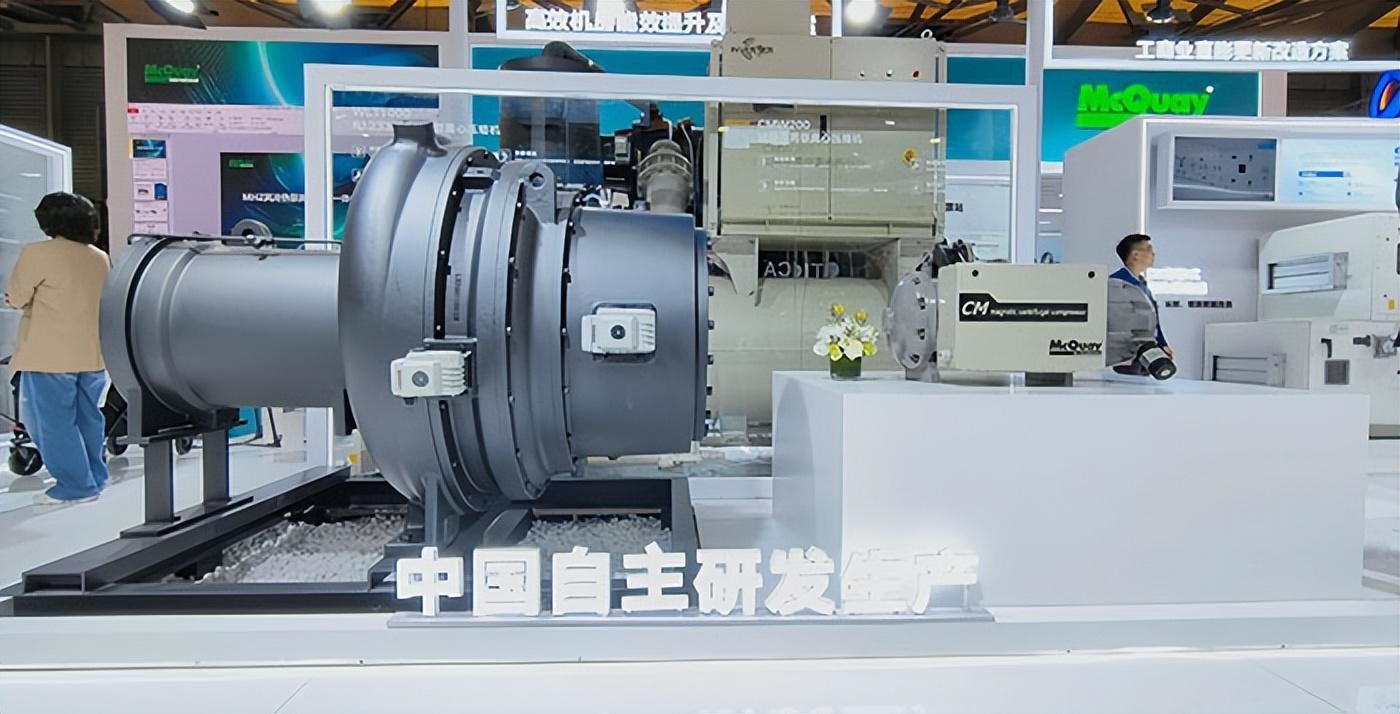 (圖:2025年中國制冷展(上海)麥克維爾展出蘇州技術(shù)研究院研發(fā)的 WLT負(fù)壓環(huán)保冷媒壓縮機(jī)和CMW磁懸浮離心壓縮機(jī))