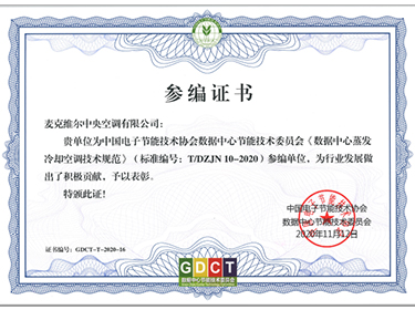 2020年,新基建得到快速的發(fā)展,其中,隨著移動互聯(lián)網、云計算和大數據的發(fā)展,數據中心作為基礎設施的關鍵設施,發(fā)展特別迅速。 11月,麥克維爾正式作為《數據中心蒸發(fā)冷卻空調技術規(guī)范》(標準編號:T/DZJN 10-2020)的參編單位,榮獲中國電子節(jié)能技術協(xié)會、數據中心節(jié)能技術委...